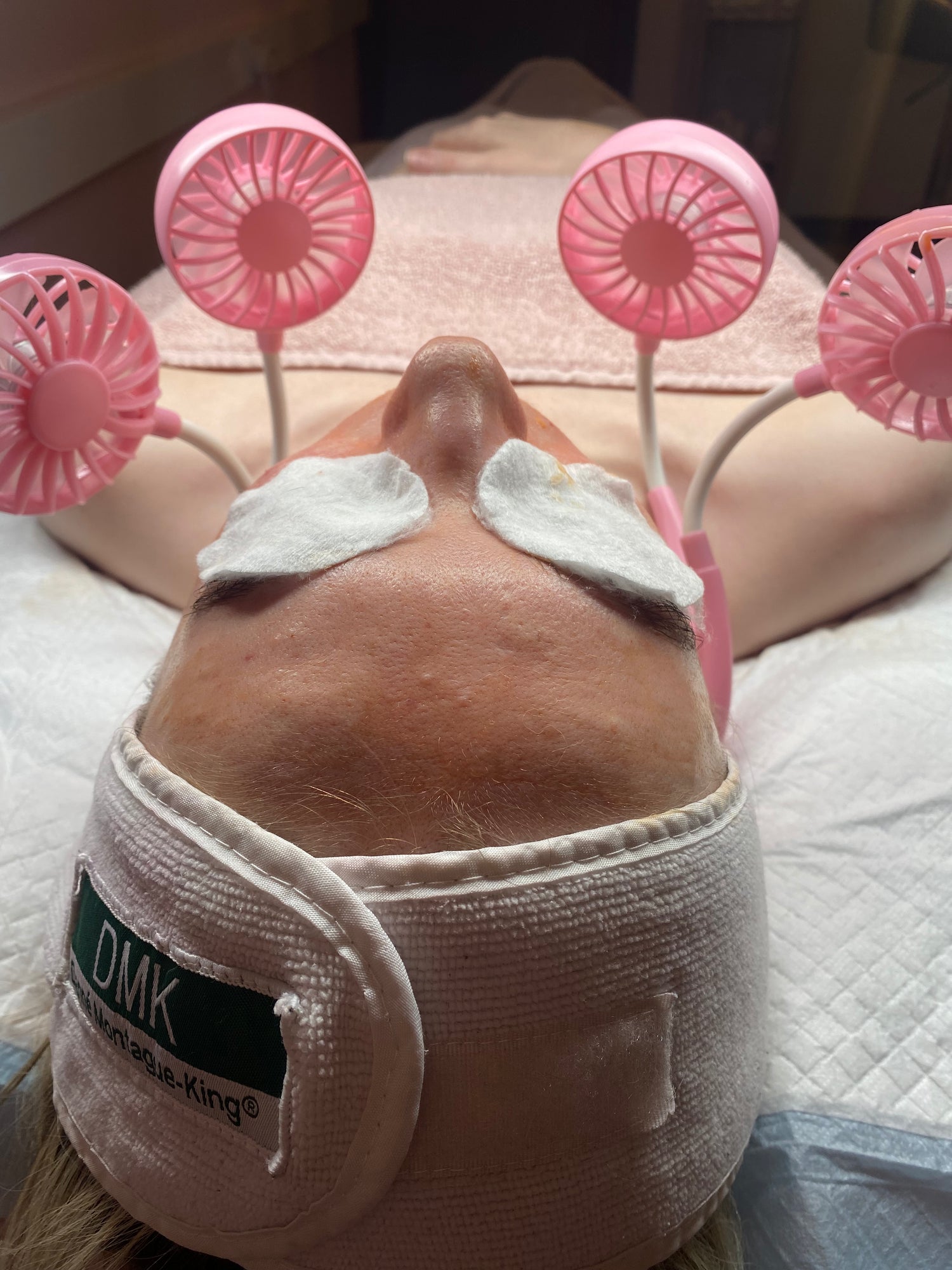 DMK Skin products are transdermal. They use chemistry that the skin recognises, which allows them to penetrate into the deeper layers of the skin. Skin tightening and toning is noticeable after the very first treatment.